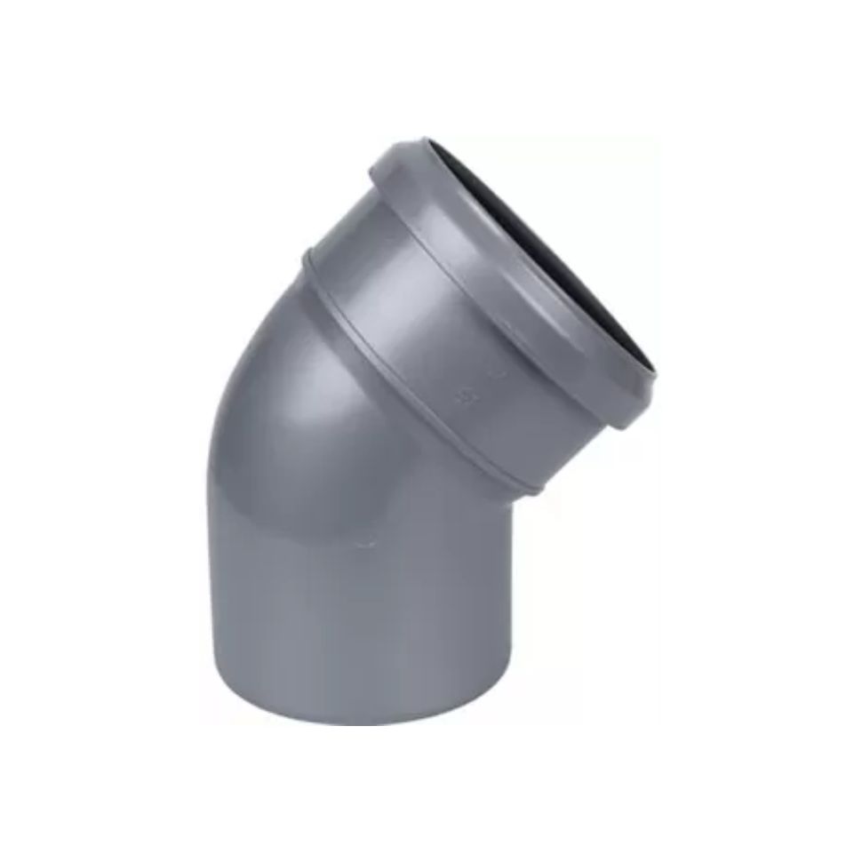 Отвод канализационный предназначен для изменения поворота канализационного трубопровода на угол 45, градусов. В качестве уплотнителей используются резиновые кольца манжетного типа с распорным вкладышем. Монтаж желательно производить с применением специальной силиконовой смазки.