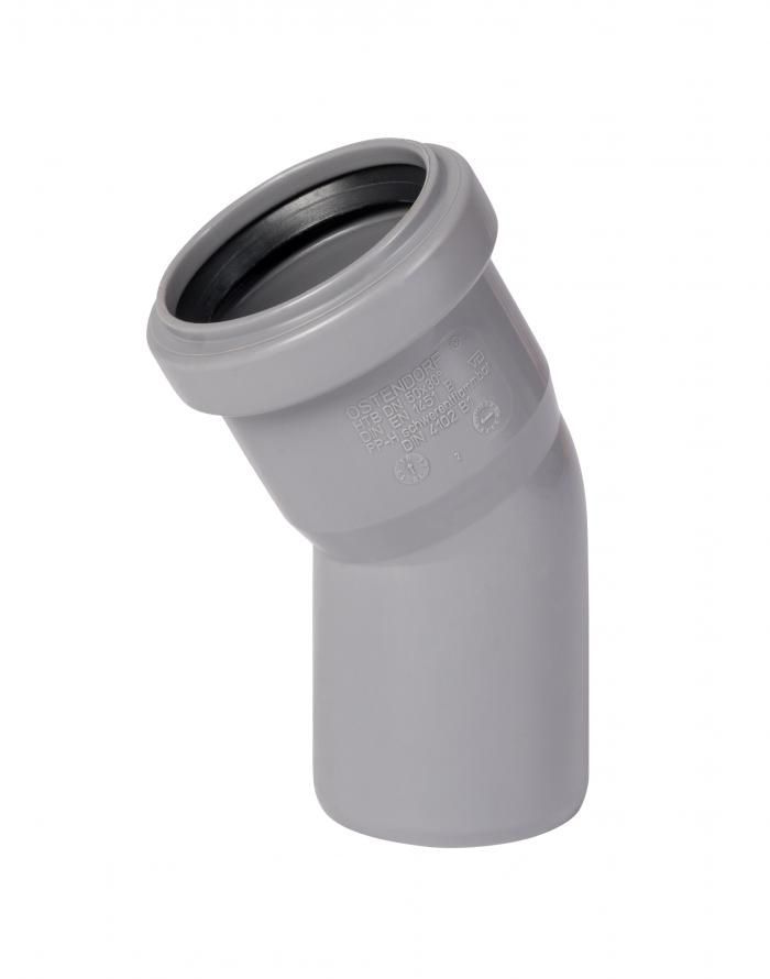 Отвод канализационный предназначен для изменения поворота канализационного трубопровода на угол 20 градусов. В качестве уплотнителей используются резиновые кольца манжетного типа с распорным вкладышем. Монтаж желательно производить с применением специальной силиконовой смазки.