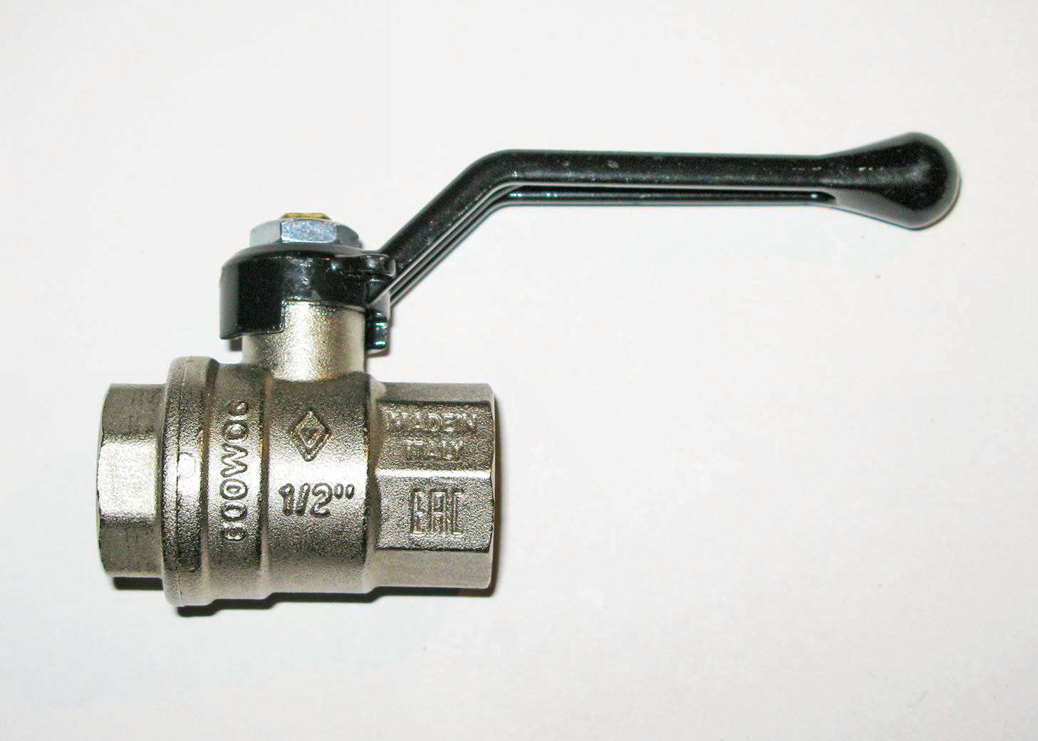 Корпус крана пескоструенный и изготовлен из никелированной кованой латуни CW617N, шаровой затвор – из хромированной полированной кованой латуни CW617N. Уплотнение шара представлено в виде 2 сёдел из фторопласта-4 (PTFE). Шток изготовлен из латуни марки CW614N. Шток вставляется изнутри корпуса, что обеспечивает взрывобезопасную конструкцию крана. Даже при существенном превышении рабочего давления и открученной гайке регулировки уплотнения возможность вылета штока исключена. Уплотнения штока представлено в виде двух прокладок из фторопласта-4 (PTFE) и одного кольца из бутадиен-нитрильного каучука (NBR).