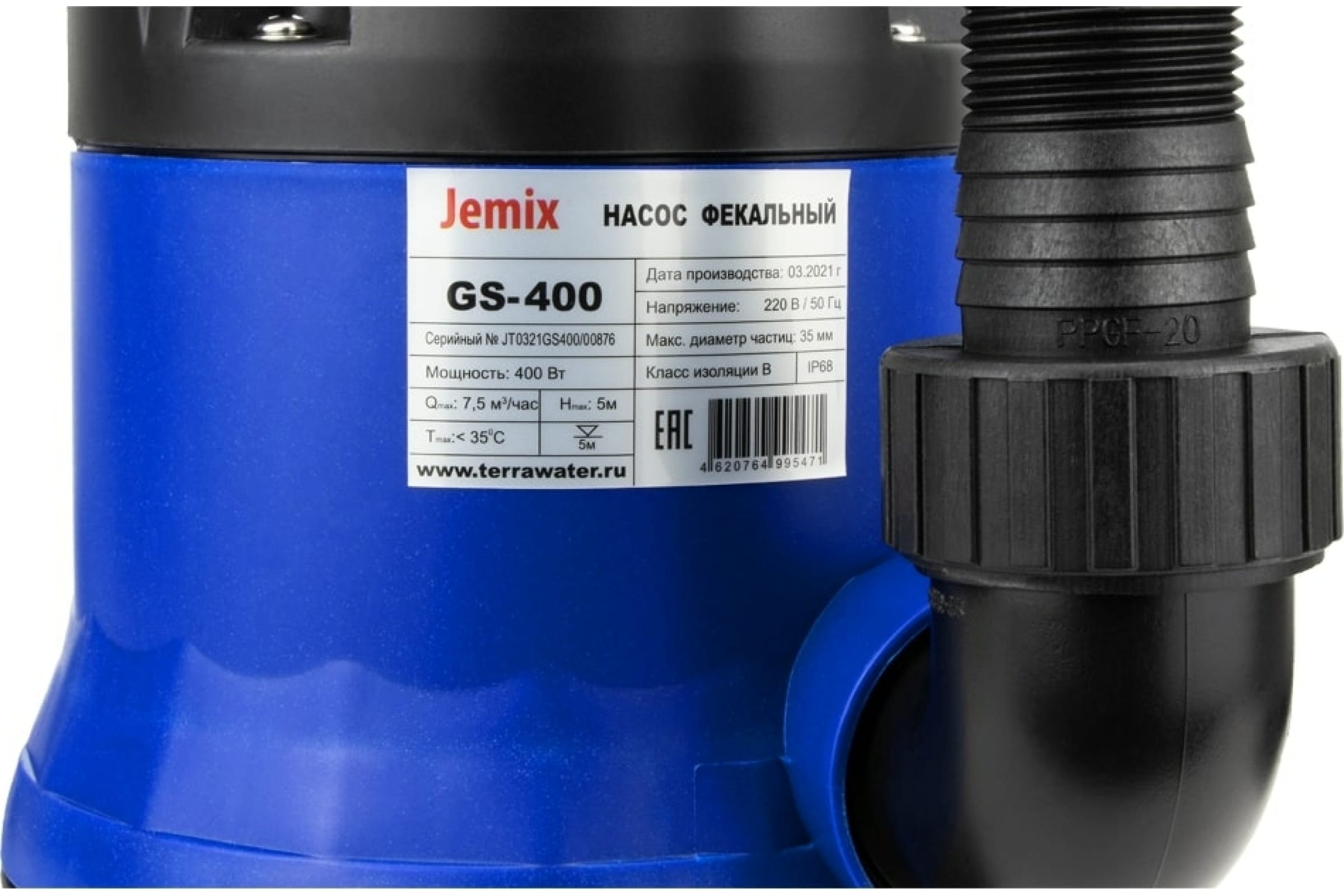 Фекальный насос JEMIX GS-400 предназначен для откачивания канализационных, дренажных, дождевых и грунтовых вод в том числе включающие фракции до 35 мм.