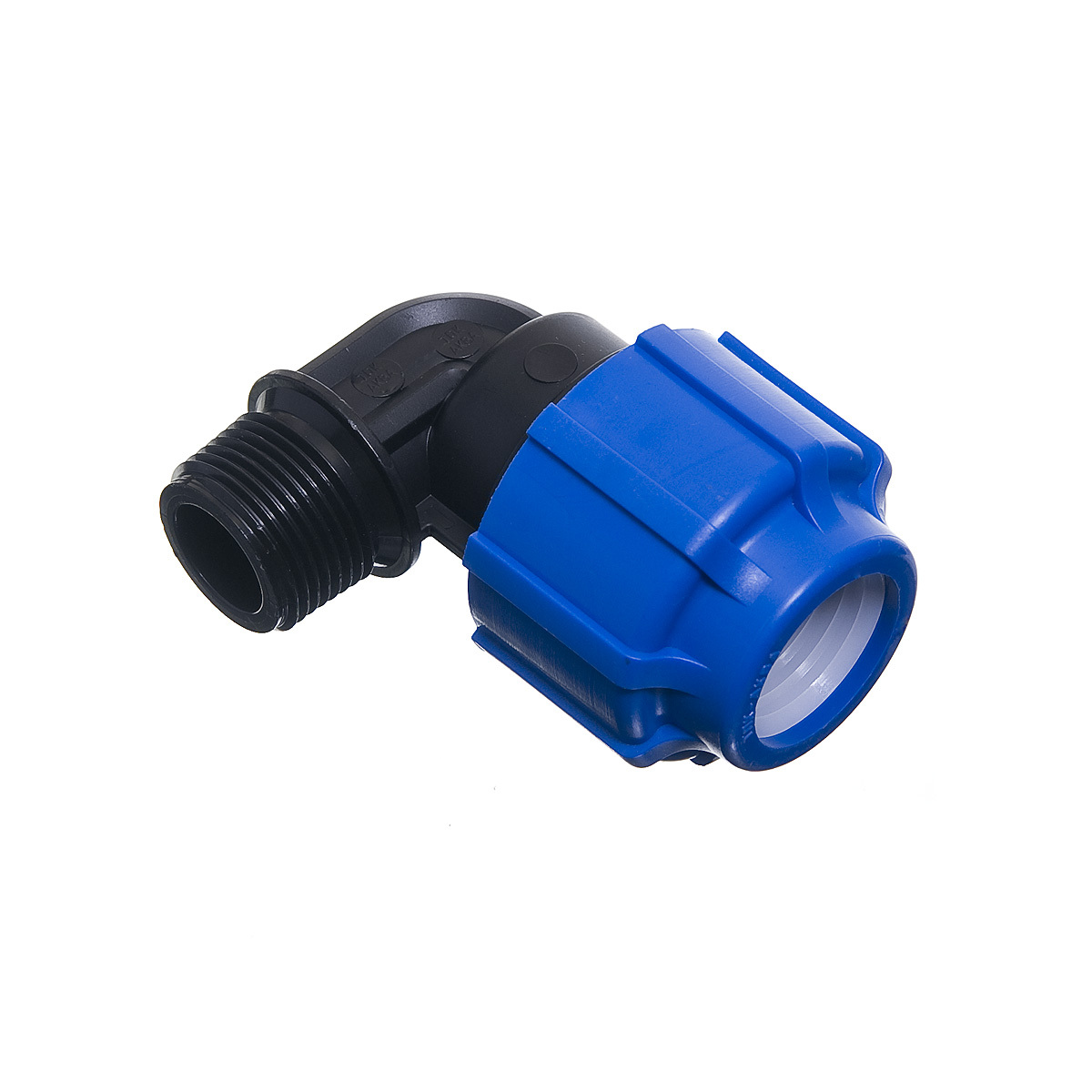 Обеспечивает переход под углом 90° с ПНД трубы 25 на резьбовые фасонные части или стальные трубы с внутренней резьбой 3/4 дюйма