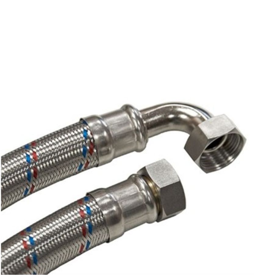 Гибкие подводки предназначены для присоединения к трубопроводам приборов водоснабжения, отопительного, сантехнического оборудования, бытовой техники, использующей воду. Подводки гибкие для воды рассчитаны на эксплуатацию при рабочем давлении 10 бар (максимальное давление – 20 бар) и температуре от 1 до 90 °C (максимальная температура – 100 °C). Внутренний диаметр шланга – 8,5 ± 0,5 мм. Накидная гайка, пресс-гильзы и оплетка подводок изготовлены из нержавеющей стали , – из качественной сантехнической латуни. Подключение гибкой подводки – гайка–гайка, диаметр присоединения – 1”.