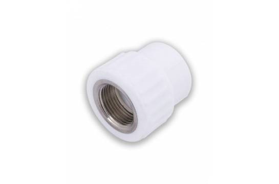 Муфта комб. с вн. р. PPR - 25 х 3/4" комбинированная предназначена для соединения стальных труб с полипропиленовыми, запорной арматуры с сантехническим и технологическим трубопроводом. Она совместима со всеми марками стали. Фитинг можно купить для системы отопления - он выдерживает температуру до 95 С. Комбинированная муфта изготовлена из антикоррозийного металла и прочного легкого полипропилена.
