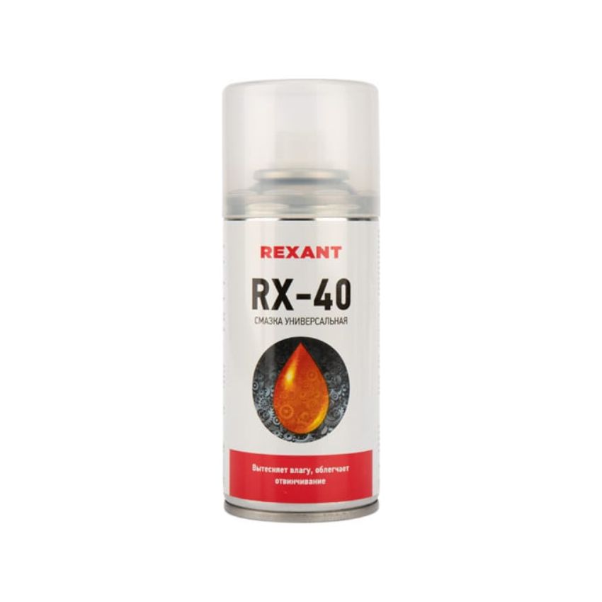 RX-40 – полный аналог WD-40. Создан для смазывания, защиты от коррозии и облегчения отвинчивания заржавевших резьбовых соединений. Эффективно смазывает трущиеся поверхности, устраняет скрипы и заедания деталей, вытесняет влагу с различных поверхностей и электрических деталей. Очищает резиновые и пластмассовые детали. Растворяет различные нерастворимые в воде технические загрязнения, очищает следы от ржавчины и коррозии. Проникает в заклинившие и заржавевшие механизмы и разъединяет их.