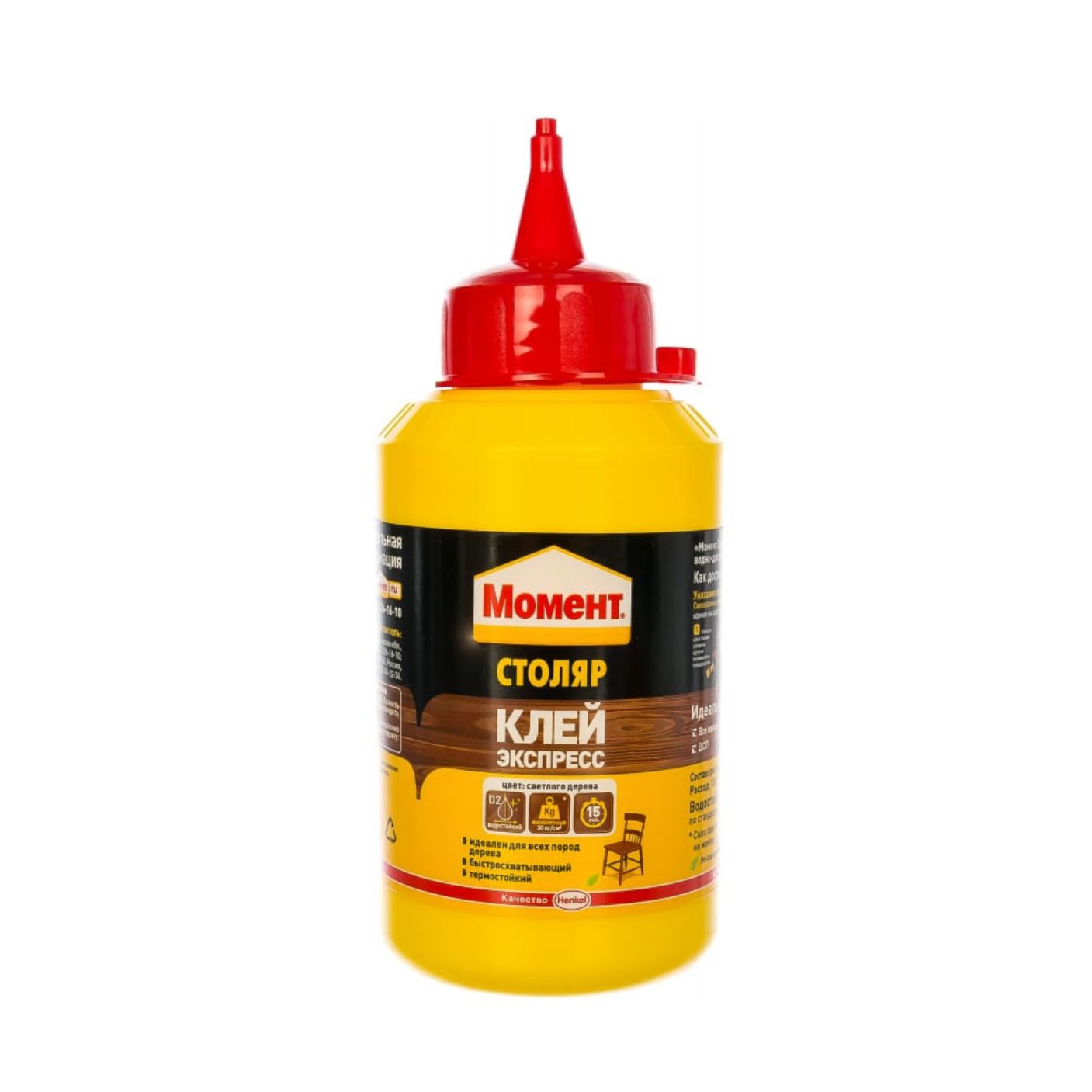 Клей СТОЛЯР Момент предназначен для различных пород дерева. С его помощью склеивают ДСП, фанеру, шпон, ламинат, картон, фурнитуру, ткань, кожу, некоторые пластики. Шов получается высокопрочный и устойчивый к кратковременному воздействию воды (водостойкость D2). Используют, например, при сборке и ремонте мебели. Беречь от мороза.
