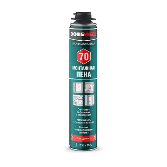 Полиуретановая монтажная пена KUDO ПРОФ всесезонная DONEWELL 70 1000 мл 11602933 разработана для монтажа светопрозрачных конструкций. Продукт незаменим в области герметизации и тепло- и звукоизоляции в строительстве. Отличается превосходной адгезией к большинству строительных материалов (бетон, кирпич, дерево, металл), высокой устойчивостью к сырости и плесени.