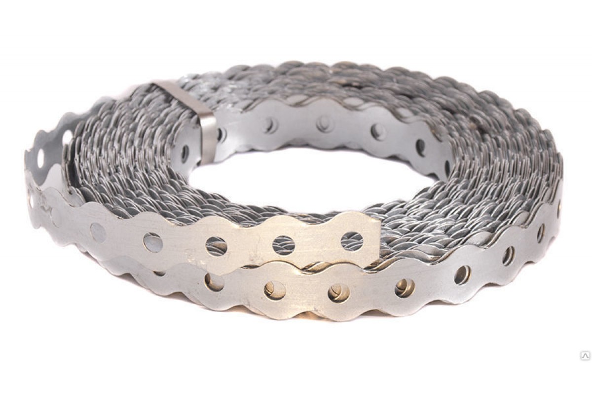 Лента перфорированная «Волна» с волнообразной кромкой и отверстиями одинакового диаметра по всей длине изготовлена из стали с оцинкованным покрытием. Применяется при монтаже легких вентиляционных систем, воздуховодов, инженерных коммуникаций, трубопроводов различного назначения. Служит для повышения жесткости отдельных узлов при сборке деревянных и усиления несущих конструкций — площадь крепежа получается достаточной, чтобы распределить нагрузку по всей поверхности.