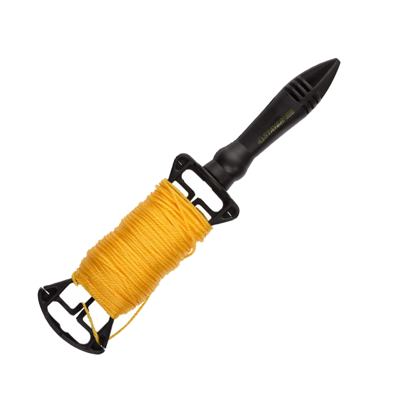 Шнур на катушке используется для ориентира во время кладки камня, кирпича, а также при монтаже различных строительных конструкций.