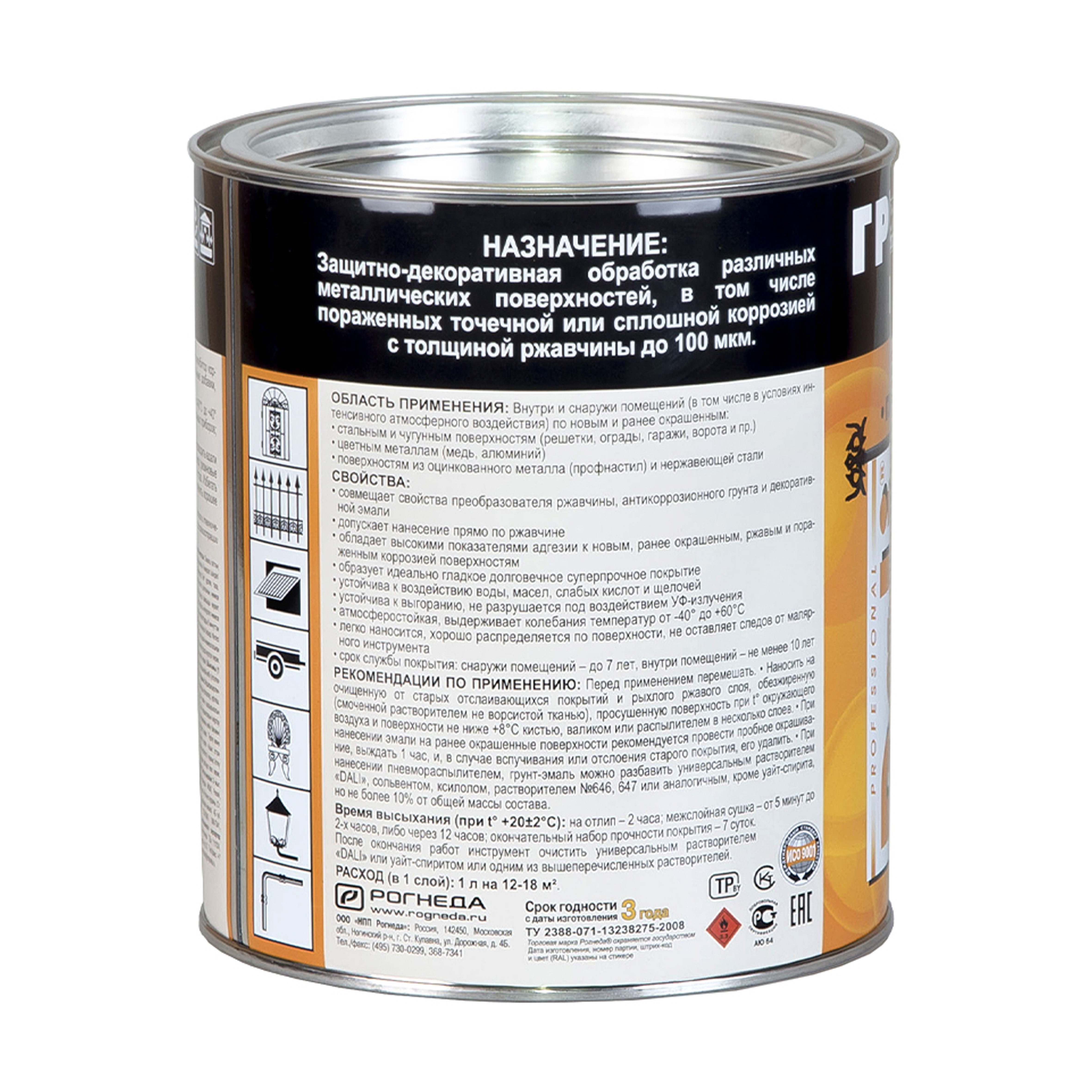 Состав: модифицированная алкидная смола, восстановитель металла, ингибитор коррозии, пигменты, наполнитель, антикоррозионные и функциональные добавки, растворитель;