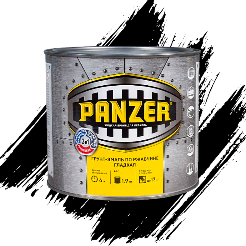 Грунт-эмаль по ржавчине "PANZER" гладкая черная 1,9л (6)