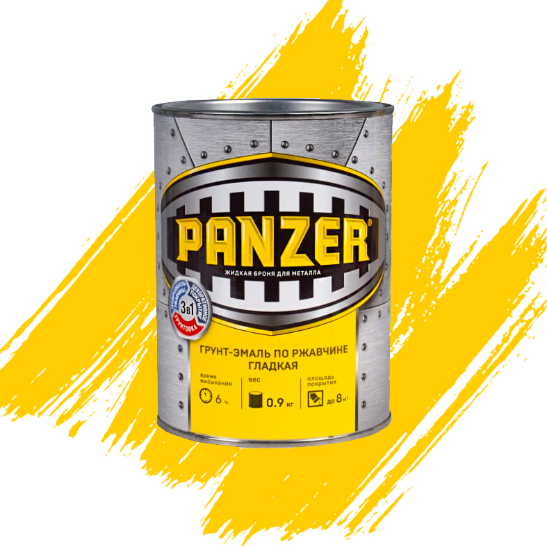 Грунт-эмаль по ржавчине "PANZER" гладкая желтая 0,9л (14)