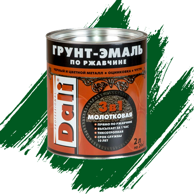 ГРУНТ-ЭМАЛЬ ПО РЖАВЧИНЕ "DALI" 3 в 1 молотковая зеленая 2 Л (3) Рогнеда