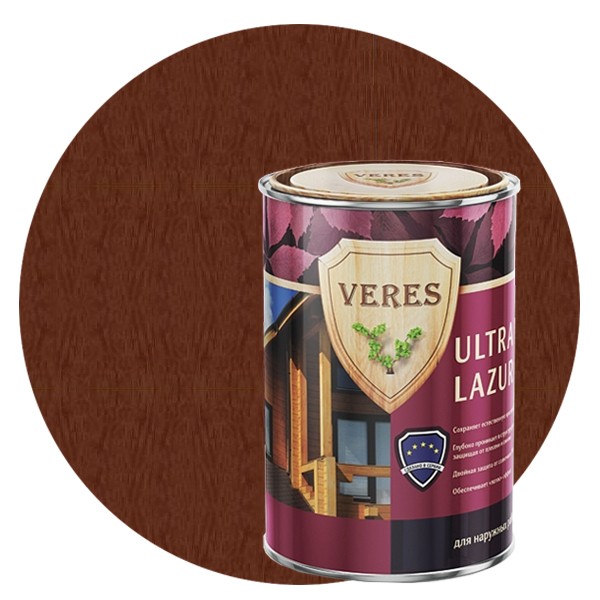 Veres Ultra Lazura - шелковисто-глянцевая декоративно-защитная лессирующая пропитка для древесины. Продукт не содержит вредных для здоровья человека и окружающей среды компонентов.