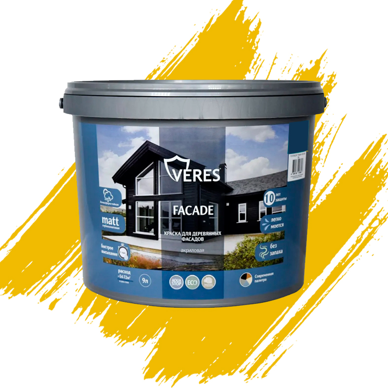 Краска "FACADE" для деревянных фасадов акриловая "Медовый" 9л "Veres"