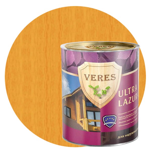 Veres Ultra Lazura - шелковисто-глянцевая декоративно-защитная лессирующая пропитка для древесины. Продукт не содержит вредных для здоровья человека и окружающей среды компонентов.