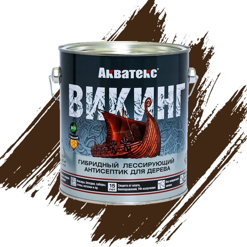Гибридный лессирующий антисептик для дерева РОГНЕДА Акватекс Викинг (палисандр; 2.5 л) 220980 предназначен для защиты древесины от воздействия влаги, появления и распространения биопоражений (гниения, плесени, грибка, синевы), УФ-излучения и других атмосферных воздействий, в том числе в тяжелых климатических условиях, для декоративной обработки древесины с целью получения благородного лессирующего (полупрозрачного) покрытия, сохраняющего видимым рисунок дерева. Не рекомендуется использовать для окраски полов и лестниц без нанесения финишного покрытия, обеспечивающего стойкость к истиранию и для окрашивания соприкасающихся поверхностей.