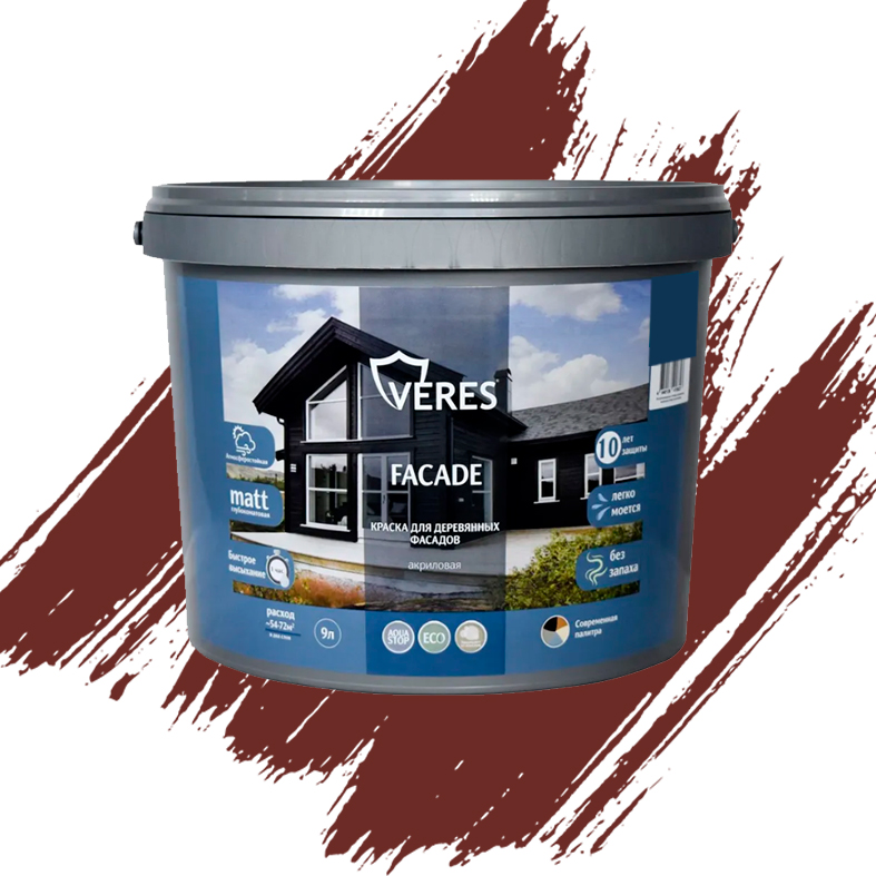Краска "FACADE" для деревянных фасадов акриловая "Шоколадный бархат" 9л "Veres"