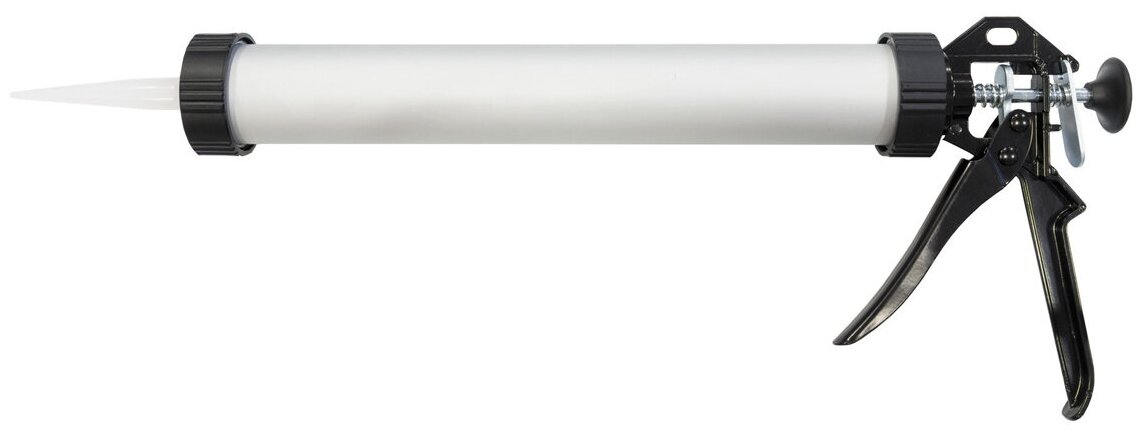 Пистолет для выдавливания герметика с алюминиевым цилиндрическим корпусом. Гладкий хромированный шток имеет круглое сечение. Применяется для выдавливания герметиков как из тубы, так и из картриджей.