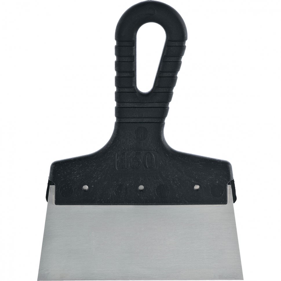 Шпатель — инструмент с небольшой шириной лезвия (150 мм). Предназначен для работы с плиточными швами, нанесения шпатлевки на сдир и демонтажа старых покрытий. Подходит для внутренних и наружных работ. Полотно изготовлено из нержавеющей стали, гибкое и упругое. Размер инструмента оптимален для проработки небольших поверхностей и сложных участков.