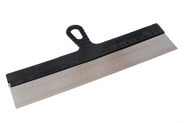 Шпатель — инструмент с небольшой шириной лезвия (450 мм). Предназначен для работы с плиточными швами, нанесения шпатлевки на сдир и демонтажа старых покрытий. Подходит для внутренних и наружных работ. Полотно изготовлено из нержавеющей стали, гибкое и упругое. Размер инструмента оптимален для проработки небольших поверхностей и сложных участков.