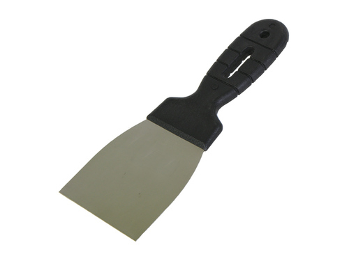 Шпатель оснащен двухкомпонентной ручкой с резиновыми вставками против скольжения.