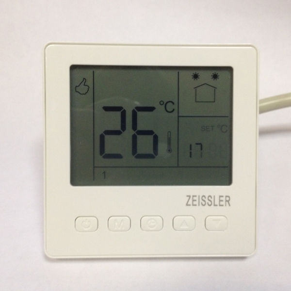 Термостат ZEISSLER M07 предназначен для управления климатическим оборудованием по заданному пользователем расписанию. Он оборудован встроенным датчиком температуры воздуха и имеет возможность присоединения выносного датчика "RTC 03"(поставляется отдельно) для регулирования температуры пола или теплоносителя. Наличие этих датчиков позволяет использовать его в одном из трех режимов