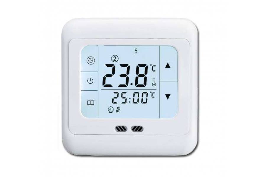 Grand Meyer PST-1, программируемый терморегулятор для управления отоплением электрического типа. Сенсорное управление. Возможность установки 3-х режимов на день. Возможность ручного управления. Возможность установки недельного периода 5+2/6+1/7 дней. Установка в стандартную монтажную коробку. Память настроек при отключении питания. Огнезащитынй пластик. NTC датчик длиной 3 м. Диапазон установки: от +5°Cдо +35°C. Рабочее напряжение 220-240 В~ 50/60 Гц.