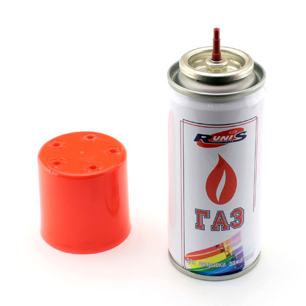 Газовый баллон с насадками, позволяют заправлять различные модели зажигалок, а также использовать газ для портативных газовых приборов, например, обогревателей, паяльных ламп, светильников, газовых плиток и прочих нагревательных приборов.