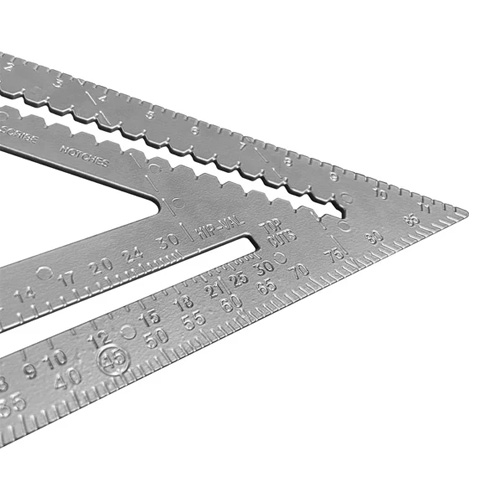Угольник выполнен из алюминия, фрезерованная разметка никогда не сотрется и позволяет использовать угольник, как рейсмус и для направления электроинструмента.