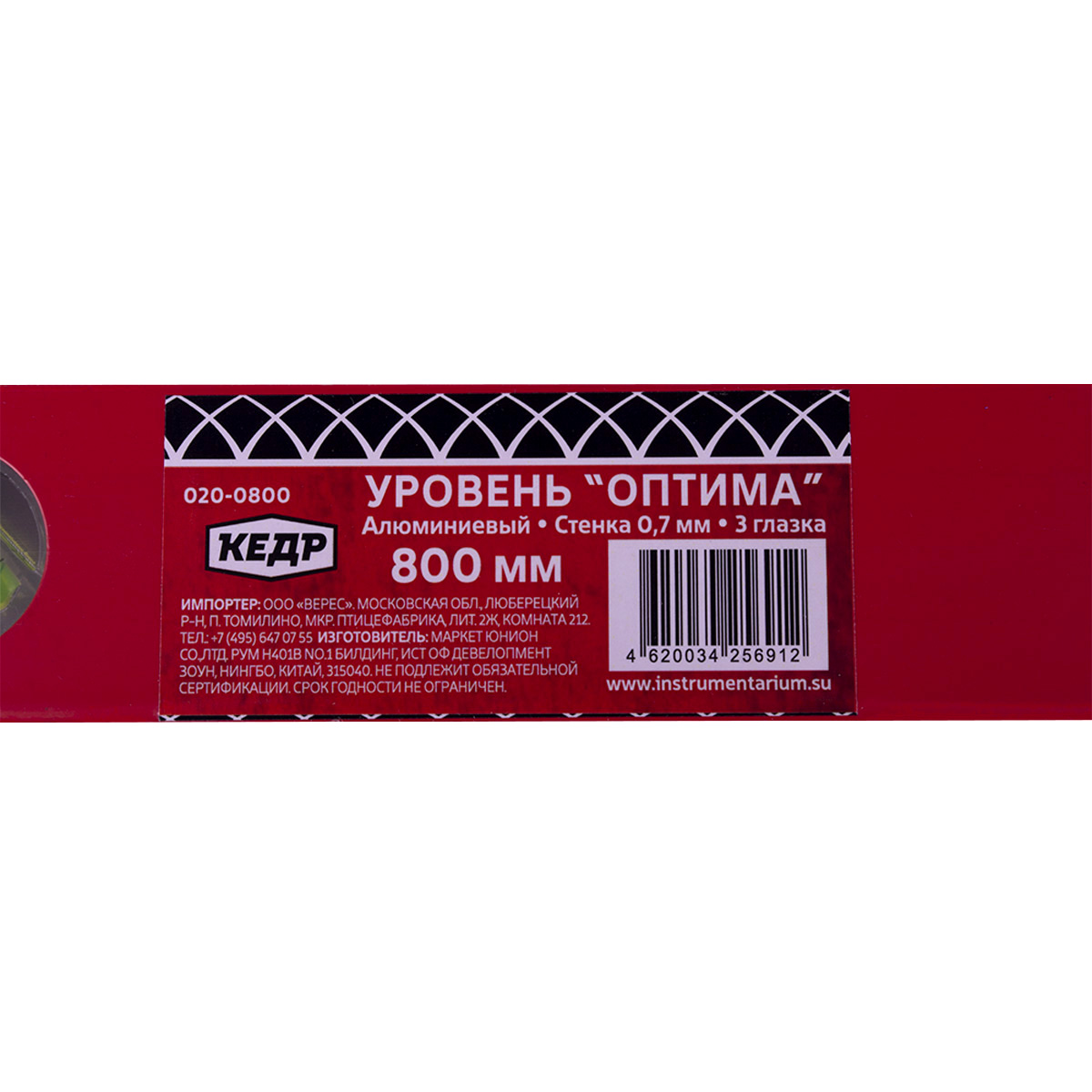 Пузырьковый уровень выполнен из алюминиевого профиля. Имеет три пузырьковых глазка для проверки отклонений по горизонтали, вертикали и под углом 45°.