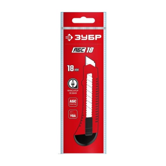 Нож из АБС пластика со сдвижным фиксатором Зубр АБС-18, сегмент, лезвия 18 мм, 09155_z01 представляет собой инструмент высокого качества. Данная модель проста и удобна в использовании.