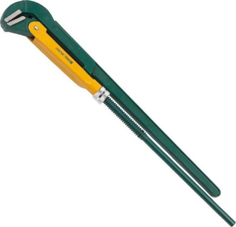 Трубный рычажный ключ. Оснащен изогнутыми губками с зубчатой поверхностью для крепкого обхвата трубных заготовок без проворачивания.