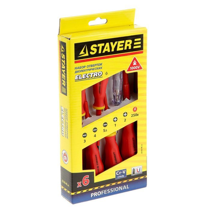 Набор отверточный Stayer состоит из 6 предметов, в число которых входят инструменты для работ под напряжением и тестер для определения напряжения в сети. Комплект станет постоянным помощником электрику, позволит выполнять монтажные задачи без опасения поражения электричеством.