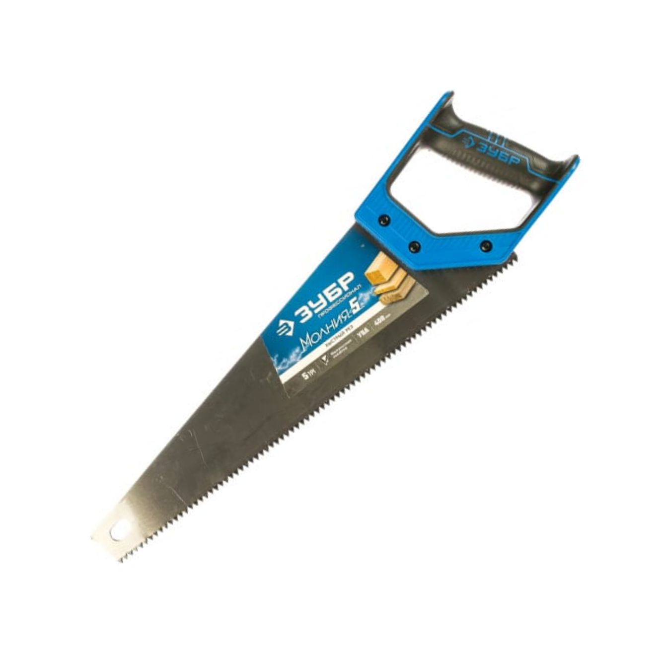 Ножовка по дереву пила Зубр "МОЛНИЯ-5" 400 мм, 5 TPI, прямой крупный зуб, быстрый рез поперек волокон, для крупных и средних заготовок, 15075-40_z02 обладает большой длиной, которая позволяет работать с брусом и бревнами.