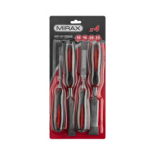 Стамеска с двухкомпонентной ручкой произведена из высокопрочной инструментальной стали, что продлевает срок службы стамески.
