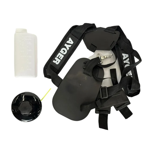В комплекте с триммером поставляется стандартная катушка с леской и режущий диск, что позволяет легко обрабатывать как газонную траву, так и плотные кустарники. Помимо этого, бензотриммер оснащен обрезчиком лески, который контролирует ее длину, а также стандартным ремнем "через плечо" для удобства работы. Для дополнительного комфорта пользователя предусмотрена стандартная антивибрационная система. Защитные очки не входят в комплект.