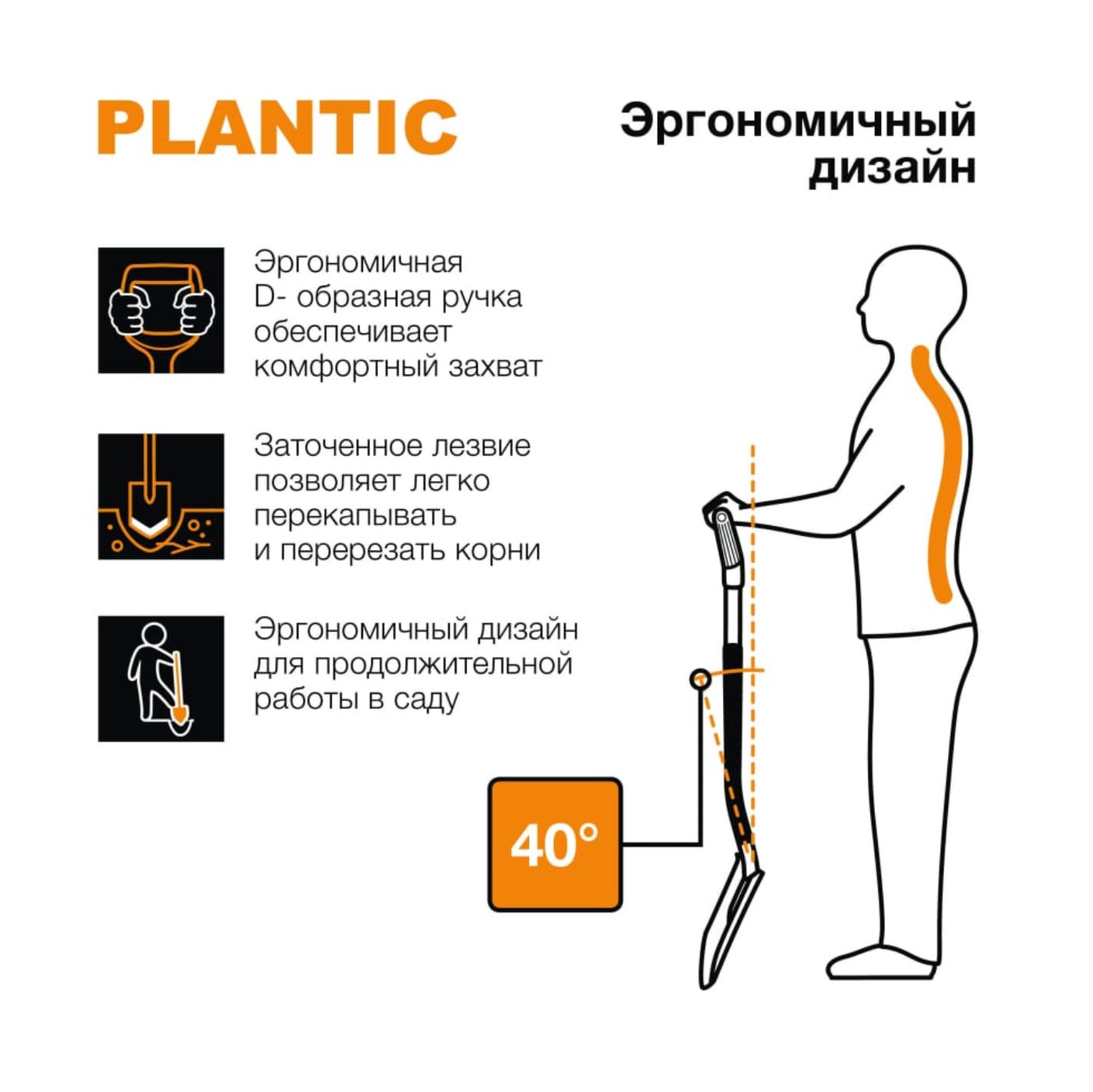 Заточенное лезвие модели под углом 30 градусов позволяет легко перекапывать и перерезать корни.