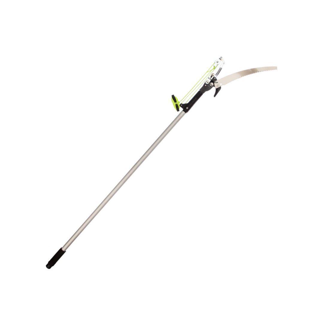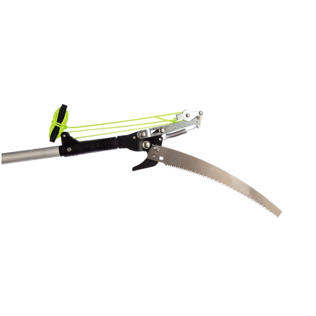Предназначен для обрезки сучков, веток растений и придания кустарникам нужной формы. Материал рабочей части: высокоуглеродистая сталь; Длина: 1600 мм. Инструмент представляет собой сучкорез с удаленным веревочным нажимом. Такая система позволяет распиливать ветки и сучки на расстоянии длины черенка. Незаменимая вещь для высоких деревьев. В комплекте идет насадка-пила. Лезвие изготовлено из высококачественной стали с индукционной закалкой.
