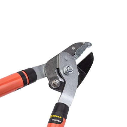 Инструмент представляет собой большие садовые ножницы с остро заточенными лезвиями для подрезки ветвей. В сложенном состоянии имеет длину 620 мм, при полном выдвижении – 915 мм. Длина фиксируется пластиковым фиксатором.