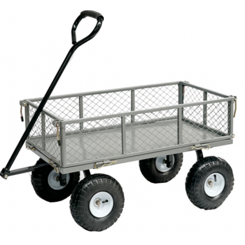 Порошковая краска защищает от коррозии и других неблагоприятных воздействий, в том числе плохих погодных условий. Тележка обладает мягким ходом, благодаря пневматическим колёсам 3,5-4.