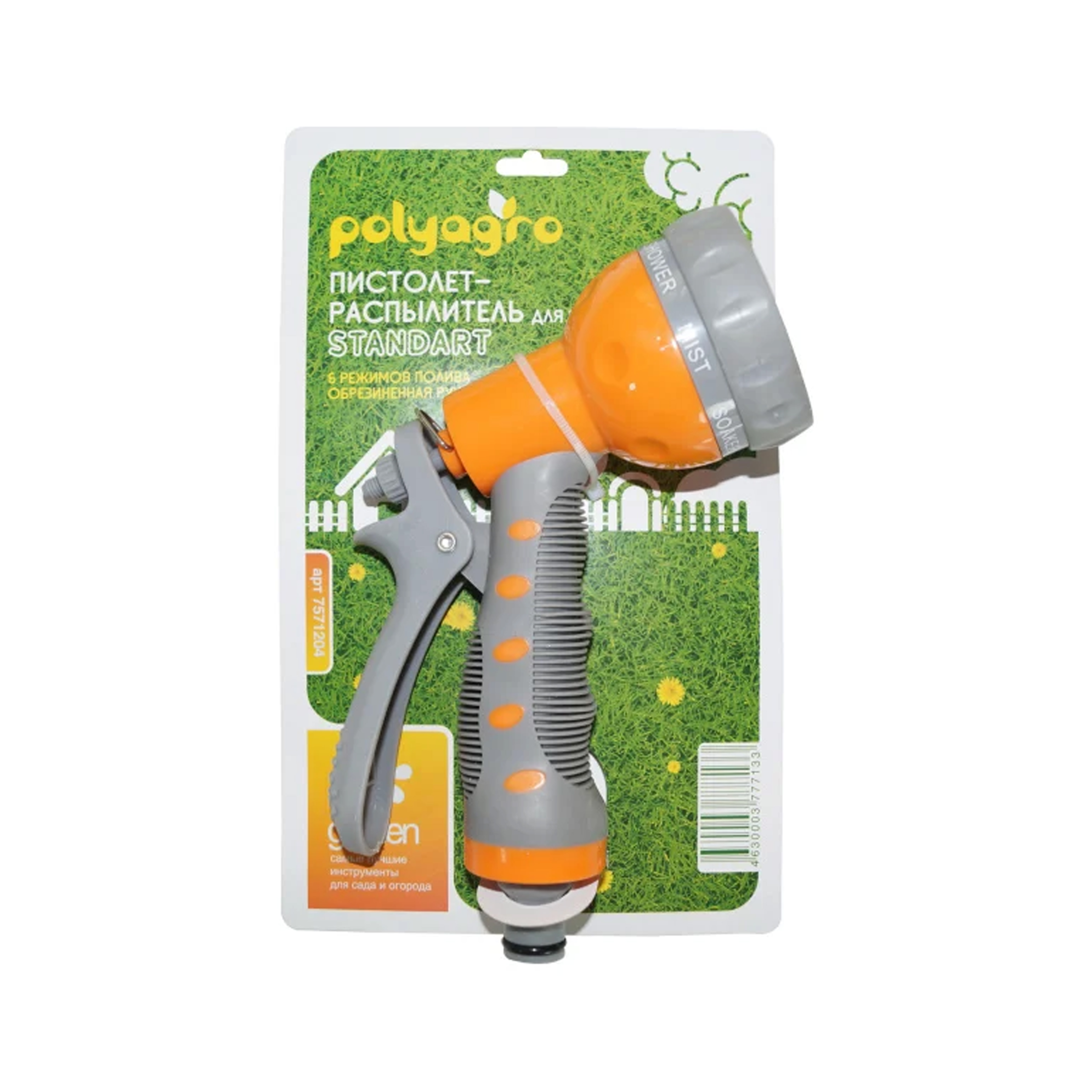 Пистолет-распылитель POLYAGRO Standart пластик, 6 режимов полива 7571204 используется для орошения частного участка.