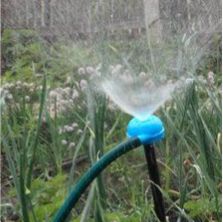 Этот дождеватель для поливочных систем внешне выглядит как емкость овальной формы, оснащенная небольшой пластмассовой трубкой, изделие имеет отверстие в середине. Таким образом, при помощи шланга идет подача жидкости в такую насадку через патрубок, после чего выливаются потоки воды в разные стороны.