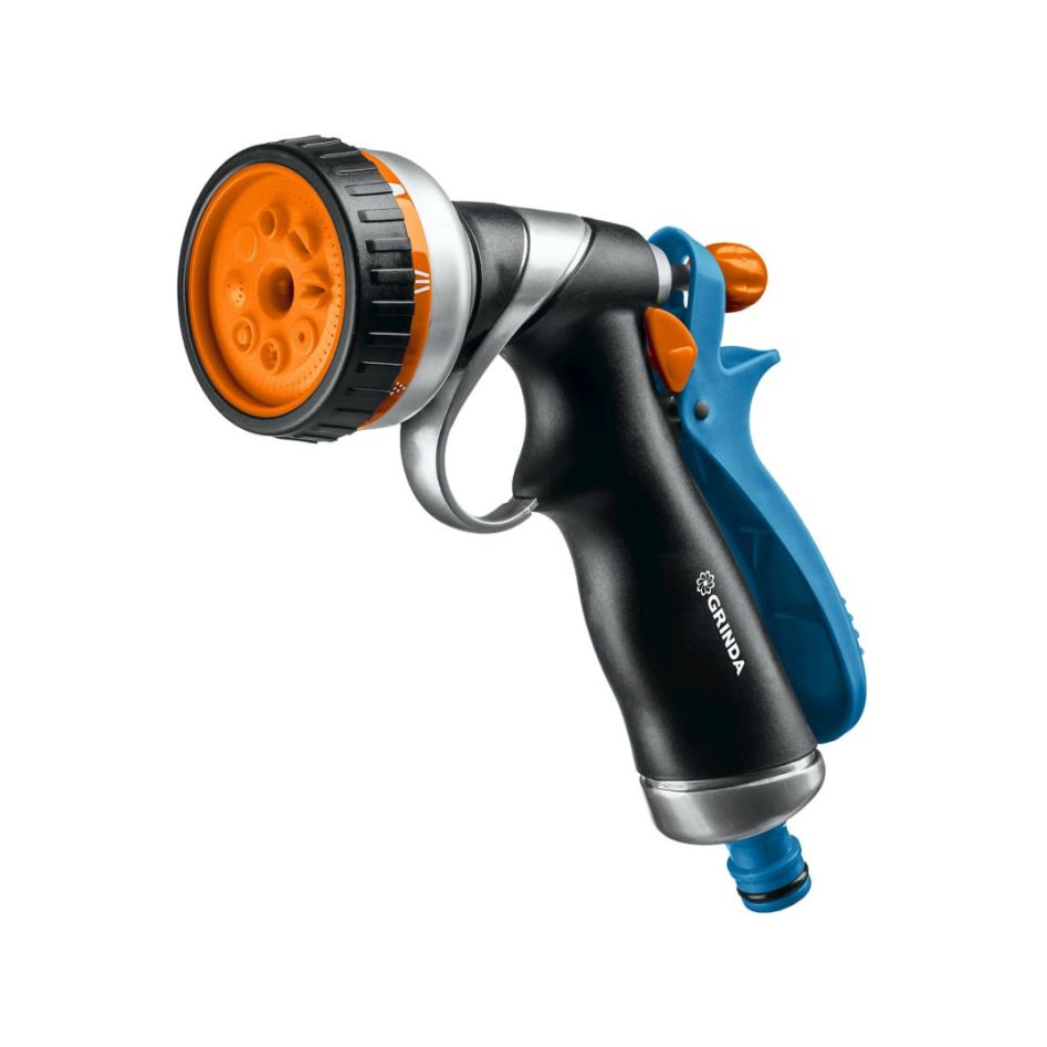 Металлический поливочный пистолет GRINDA PROLine RM-8 8 режимов, TPR покрытие 8-427143_z02 применяется для полива растений на дачном участке или в саду.