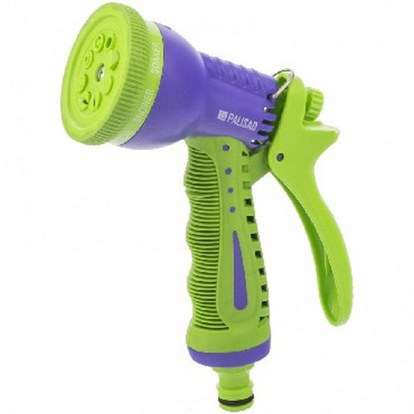 Пластмассовый регулируемый пистолет-разбрызгиватель DON GAZON с восемью режимами струи используется на садовых и приусадебных участках с целью направленного полива растений.