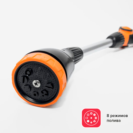 Форсунка имеет 8 режимов полива и регулятор угла наклона для эффективного полива участка..