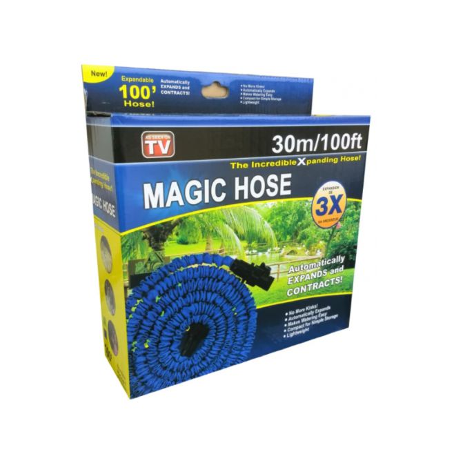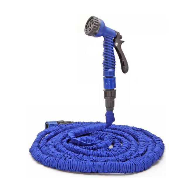 Шланг состоит из внутреннего латексного шланга и внешнего – износостойкого из нейлона. Конструкция «два в одном» позволяет шлангу увеличиваться в размерах до 3-х раз от своего изначального размера под напором воды! При этом создаётся мощное распыление, которое поможет вам максимально быстро и эффективно, к примеру, полить цветы или помыть машину.