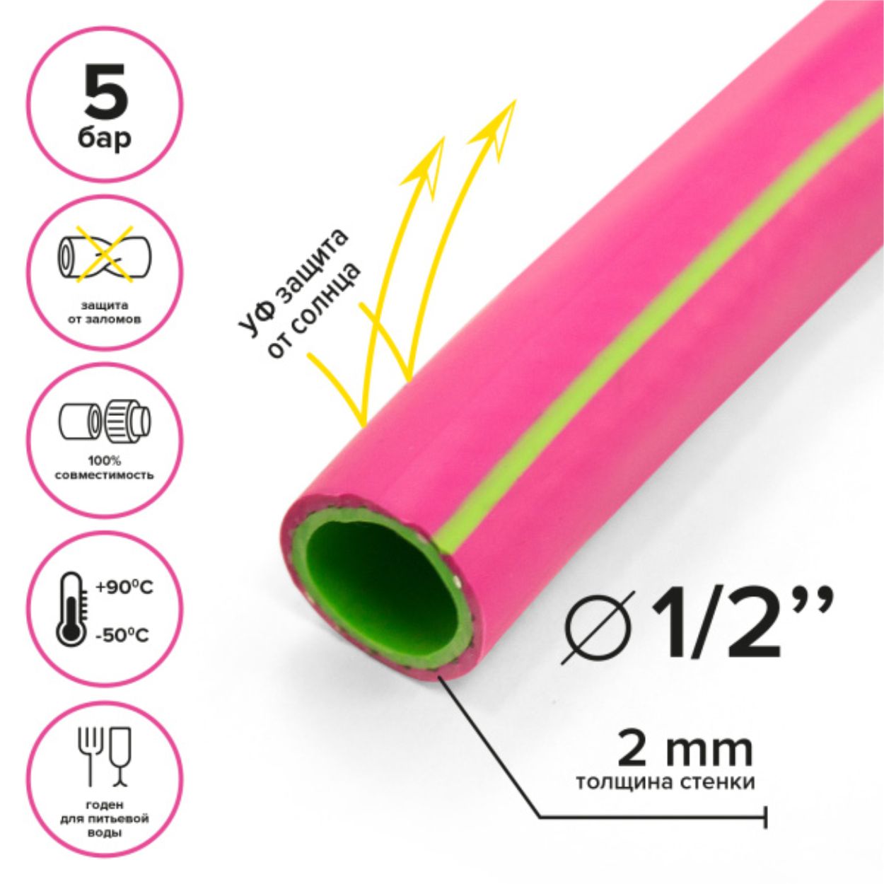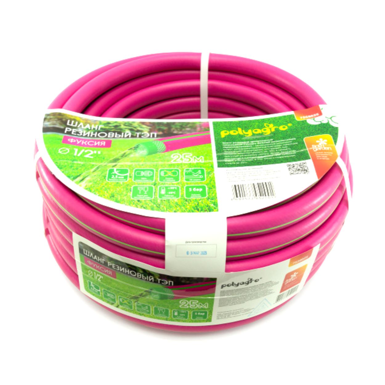 Армированный трёхслойный морозостойкий шланг POLYAGRO ТЭП 1/2", 25 м, изготовлен из термоэластопласта - аналога резины с улучшенными характеристиками. Обладает высокой прочностью и гибкостью. Устойчив к перепаду температур. Можно использовать не только для полива, но и для организации питьевого водоснабжения и перекачки пищевых жидкостей.