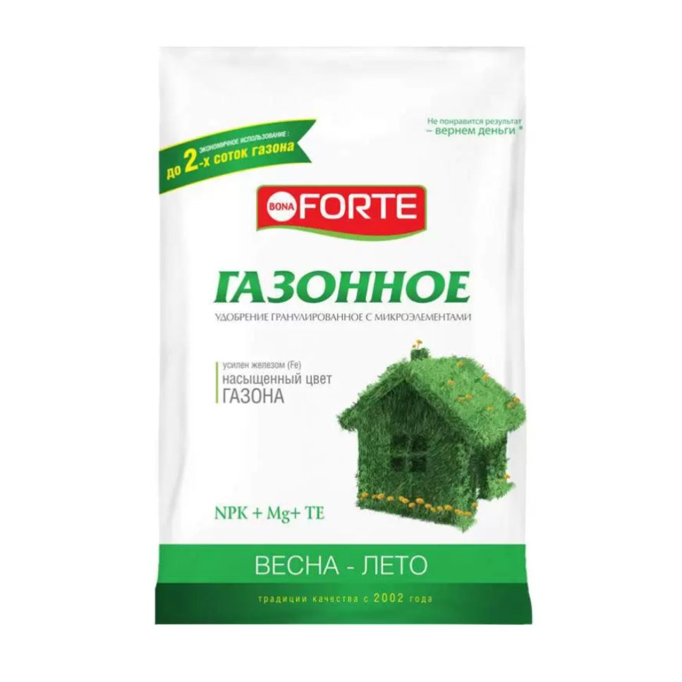 Удобрение содержит основные элементы питания в легкоусвояемой форме и сбалансированном соотношении, способствует хорошему росту растений и развитию газонных трав: