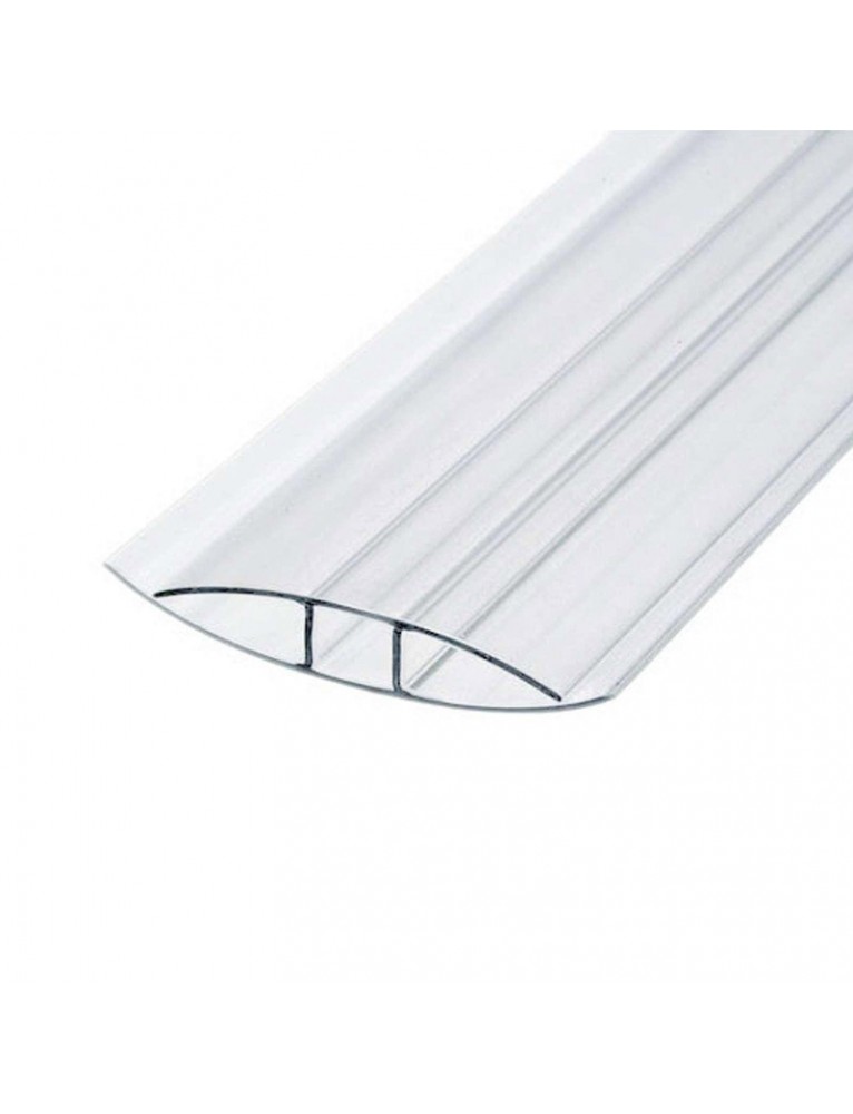 Соединительный неразъемный профиль имеет фиксированную длину 6 метров. Перед применением допускается индивидуальная обрезка по размеру стыковочного соединения. Чтобы осуществить стыковку, поликарбонатные панели заводятся в специальные пазы профиля.