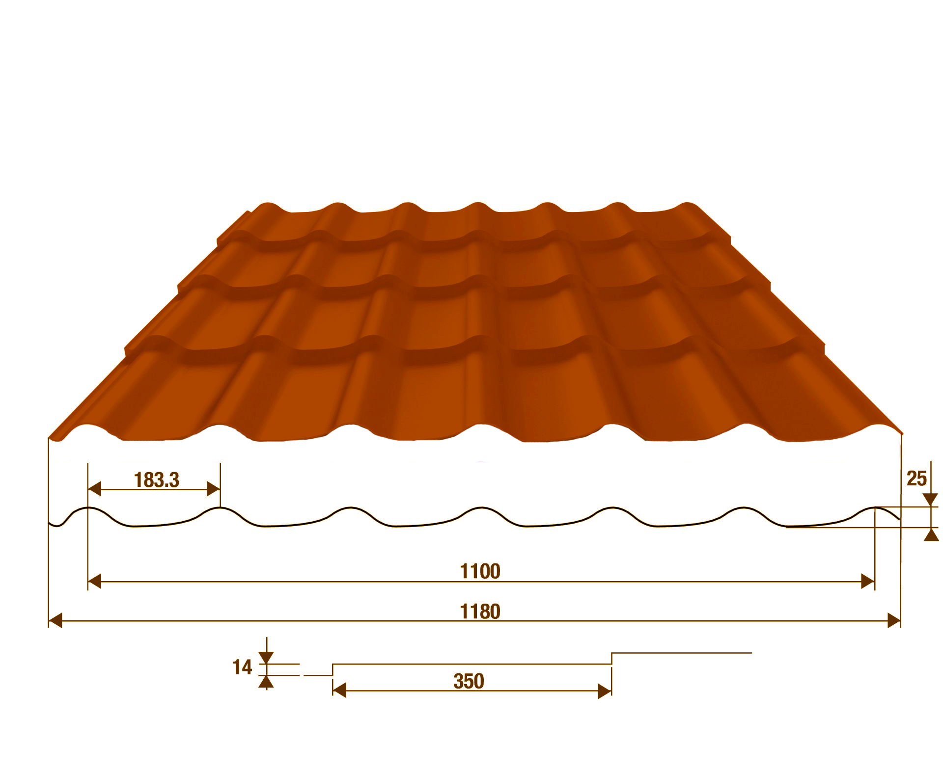 Металлочерепица Modern имеет распространенный тип профиля, геометрия которого приближена к профилю классической керамической черепицы. Эта металлочерепица в скандинавском стиле станет отличным акцентом Вашего дома. Красивый и гармоничный внешний вид, классика линий позволяют металлочерепице Modern органично сочетаться как с природным ландшафтом, так и с любым архитектурным стилем самого дома.
